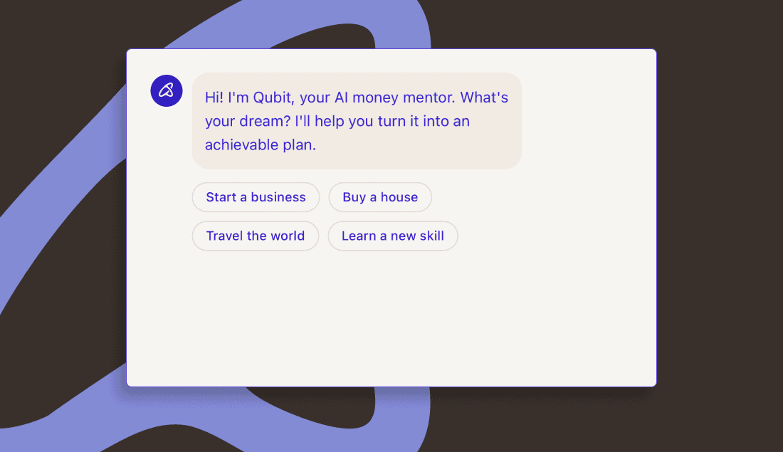 We built an MVP for Qubit, a financial AI mentor that understands money behavior. In 6 weeks we delivered a working prototype with goal based planning, smart nudges, open banking logic and automated saving, helping users stay on track and turn good intentions into real financial progress.